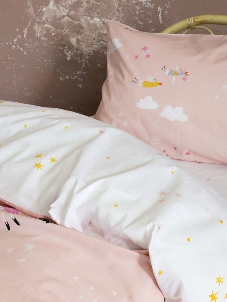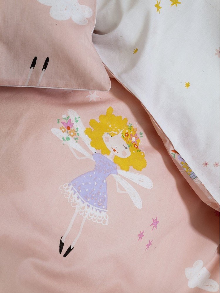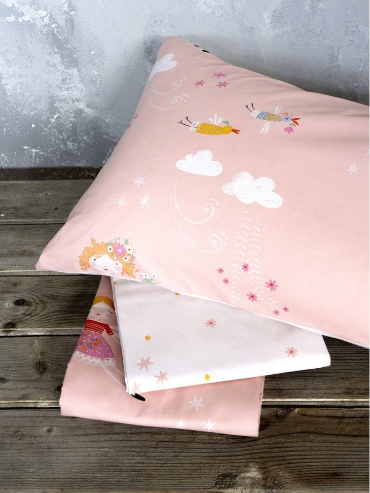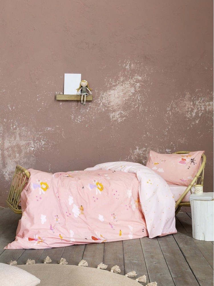 Τα βαμβακερά σεντόνια Fairytale είναι μια ονειρεμένη επιλογή για το κοριτσίστικο δωμάτιο. Ένα ρομαντικό σχέδιο σε σύγχρονη απόδοση, με μοντέρνες νεράιδες που στροβιλίζονται ανάμεσα σε πουλάκια και ζωάκια σε έναν παραμυθένιο ουρανό. Η φαντασία καλπάζει και βοηθά τα παιδιά να αναπτύξουν τη δημιουργικότητά τους και να χαρούν την ανεμελιά τους.